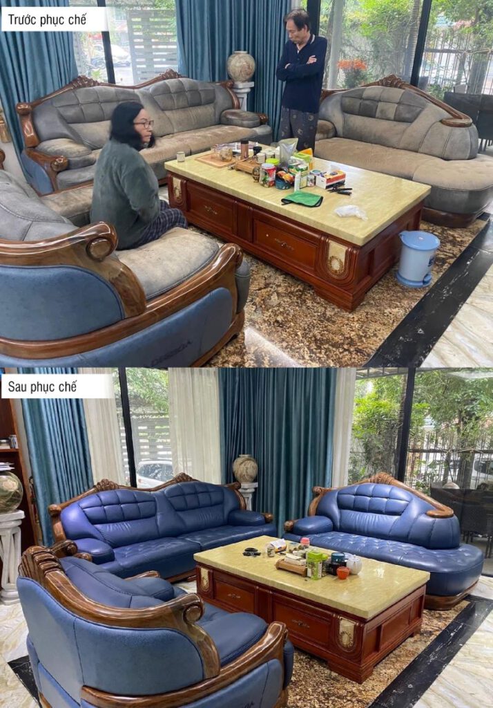 Hình ảnh bộ sofa nhà chị Bích trước và sau khi phục chế